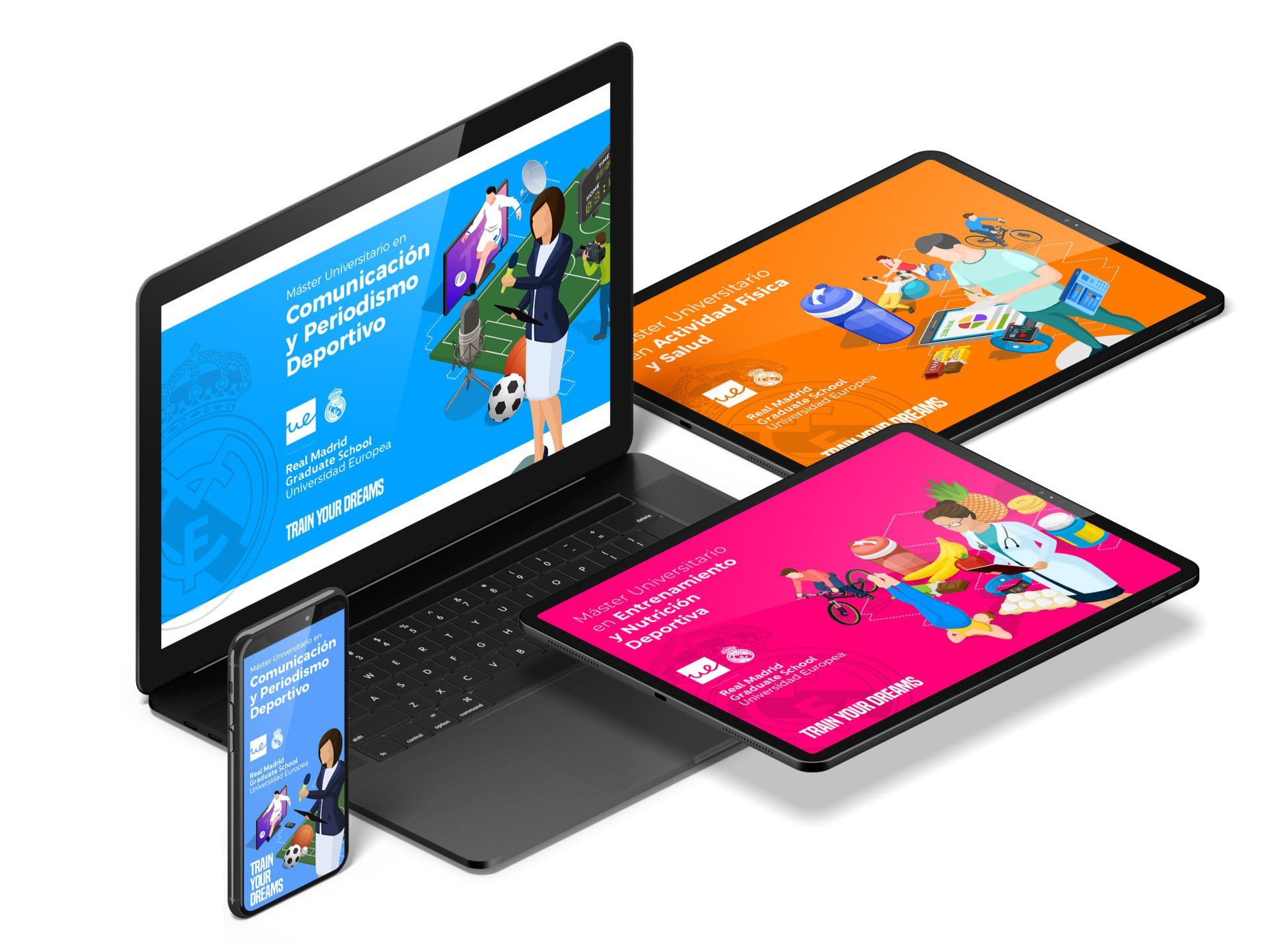 Se presentan dos campañas de medios para promocionar los distintos Máster relacionados con temario deportivo que disponen la escuela Real Madrid en conjunto con la Universidad.
