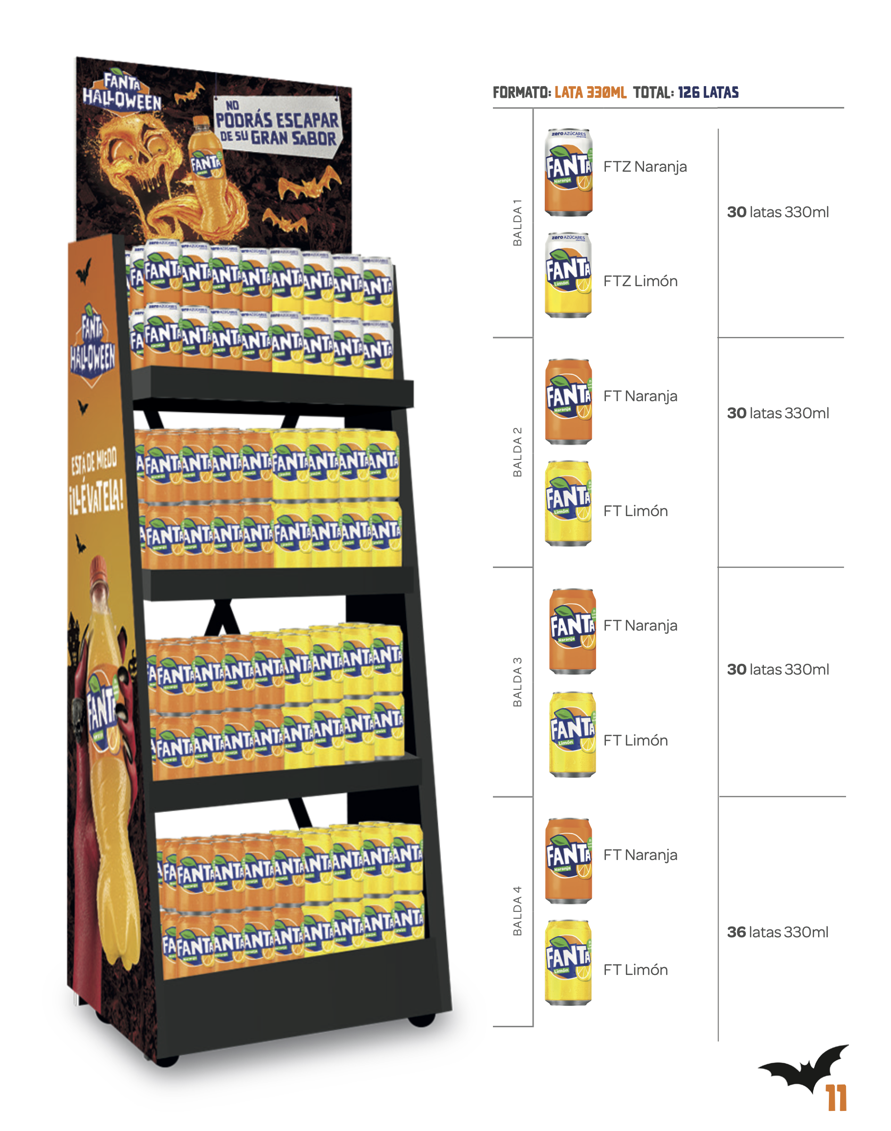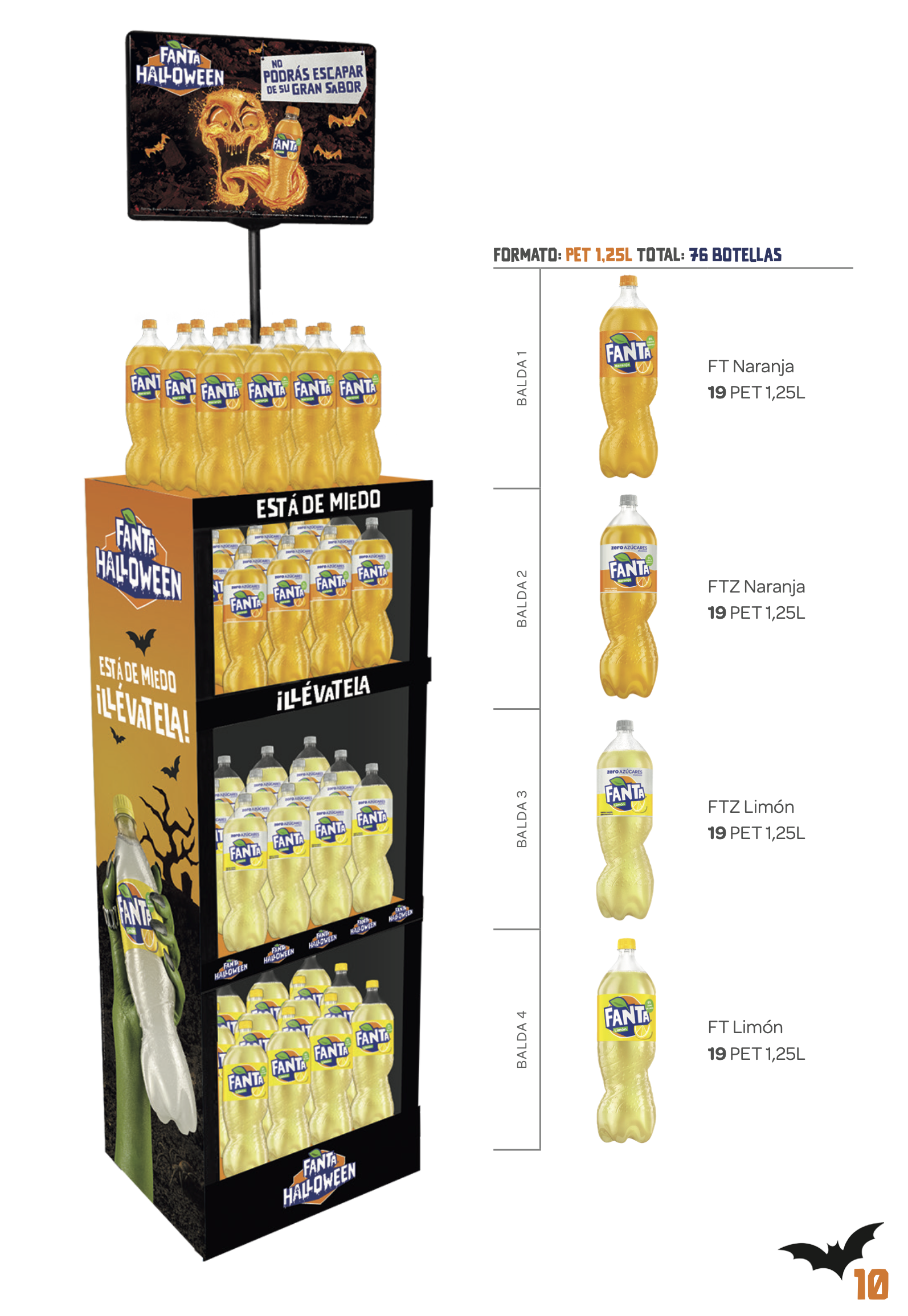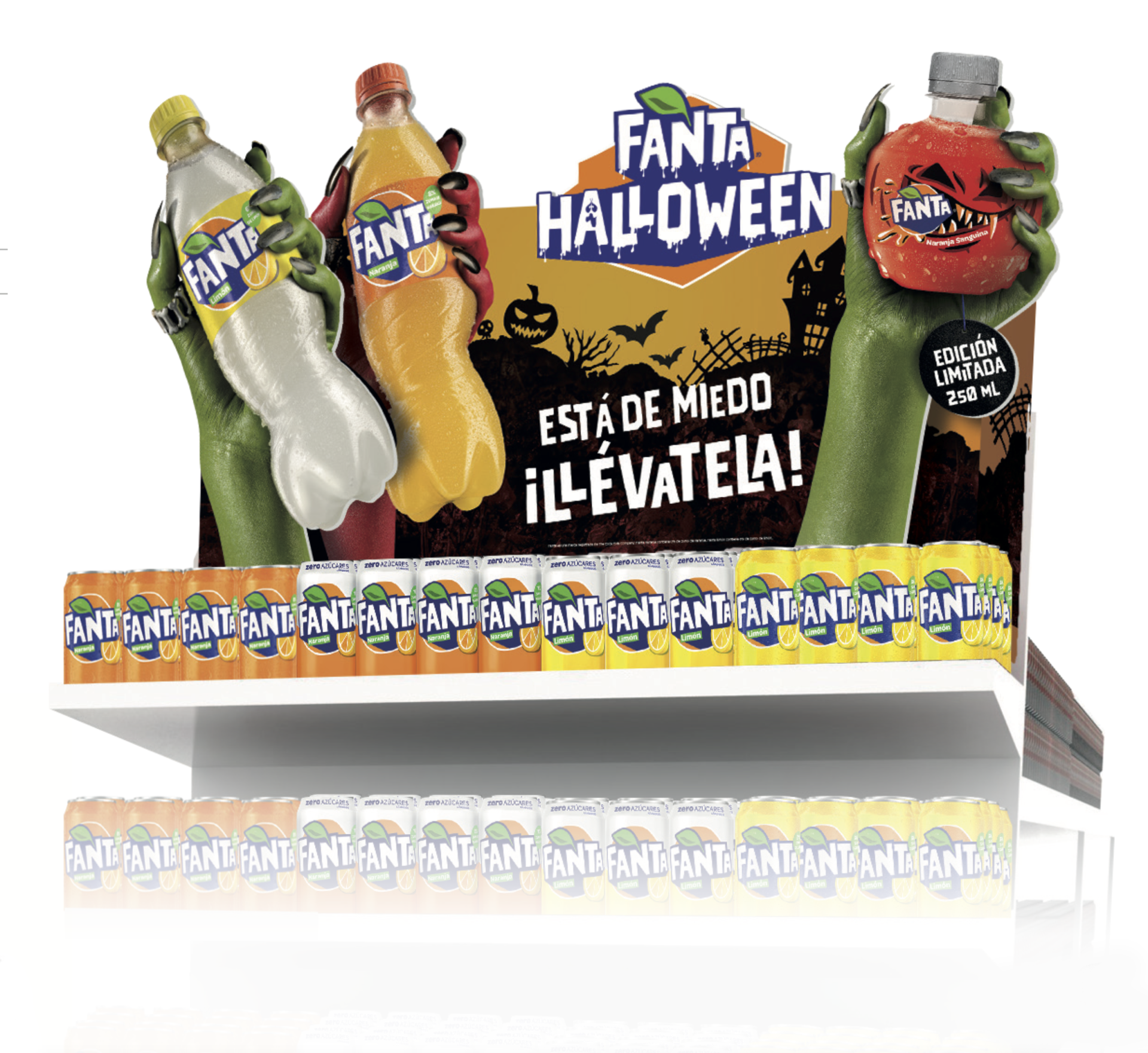 Igual que el caso de Coca-Cola Navidad, se plantea la promoción de Fanta para Halloween y su implantación en todas las superficies de grandes supermercados e hipermercados.